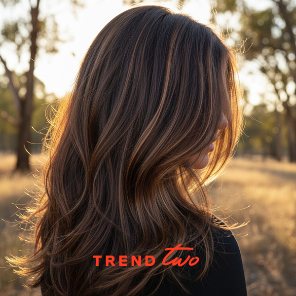 Brunette tones are evolving: no more flat matte browns, instead we see rich, glossy and dimensional. Think espresso, mocha, warm chestnut with understated highlights.